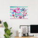 Crea tu propio regalo de verano inspirado en las acuarelas con este diseño de estrella, alfombra de playa, sandalias de playa, corazón, caballito de mar, coral, cono de helados y trozos de sandía en tonos rosa, turquesa, violeta y verde azulado sobre un fondo a rayas a juego. Reemplace el texto de ejemplo con el suyo propio para obtener un regalo personalizado. Perfecto para eventos de verano, cumpleaños, fiesta de playa y otras ocasiones.