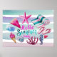 Póster Hola verano acuarela Monograma franjas de playa