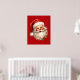 Poster con un alegre ilustracion de un Santa Claus de estilo vintage con las mejillas rosadas rojas. Vistiendo su clásico sombrero de Papá Noel rojo y su gran oso blanco. Un brote de holly se suma al espíritu festivo de este diseño.