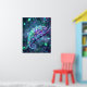 A fascinating hologram chameleon grips a futuristic vine, covered in shifting transparent scales, glowing circuit cells, and adaptive color-changing light. Cyan, lime, violet, magenta, and electric blue gradients move across its body while rotating eyes and curled tail add personality. Surrounded by luminous jungle leaves, mist, reflective droplets, and digital foliage, the scene feels vibrant and immersive. This playful cyber reptile design is perfect for modern interiors, gaming rooms, and reptile lovers.