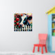 Póster Holstein Cow Picket Fence Red Roses Black Red