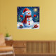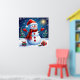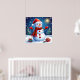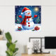 Póster Hombre de nieve alegre usando un sombrero de Santa