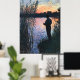 Póster Hombre de silueta pescando al atardecer - Impresio