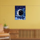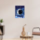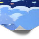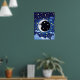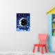 Poster en un juguetón, místico, sereno, hombre en la luna, brillando contra un fondo de estrellas y nubes nocturnas