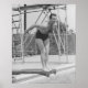 Hombre parado en una tabla de submarinismo, preparándose para bucear (B&W) | George Marks | AssetID: 72131098