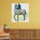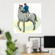 Un hombre en equipo de montar a caballo. Este diseño parece realmente efectivo en este Poster