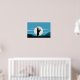 Un poster gráfico con el ilustracion de una silueta de un hombre con un kilt y tocando gaitas, parado en un terreno rocoso a la luz de la luna. Este diseño crea una atmósfera escocesa en tonos azules. Este arte mural será perfecto para decoración en casa o oficina.