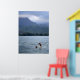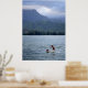Póster Hombre y perro en el tablón de remo en la bahía de