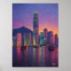 Póster Hong Kong Skyline Pointillism Sunset Cityscape