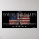 En honor a los miembros caídos de nuestros servicios armados. Una cruz de soldados con la bandera estadounidense en el fondo. Las cinco estrellas representan las cinco ramas del ejército estadounidense.