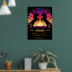 Contra un impresionante fondo de puesta de sol, dos caballos se encabritan en una dramática silueta, sus poderosas formas delineadas contra un cielo pintado con vibrantes gradaciones de naranja, rosa y púrpura. Las poses dinámicas de los caballos irradian fuerza y gracia, contrastando con el horizonte en llamas. En la parte superior, la palabra "Honor" está elegantemente escrita en una llamativa letra cursiva amarilla, simbolizando dignidad e importancia. Debajo, la cita de Aristóteles — "La dignidad no consiste en poseer honores, sino en merecerlos" — se muestra en una fuente amarilla coincidente, lo que garantiza la claridad contra el cielo que se oscurece. Un borde negro sólido enmarca esta impactante escena, creando una composición pulida y poderosa.