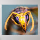 Imagen macro de una cara de avispón. Increíble detalle en sus ojos morados, sobresalientes antenas amarillas y mandíbulos. Ideal para los amantes de los insectos.