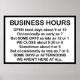 El diseño es una señal de tienda divertida con horario de trabajo, la señal de novedad es un aviso gracioso para cualquier tienda o negocio, indicando el horario de trabajo en el cartel.