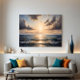 Una obra de arte que captura la infinita serenidad del océano al atardecer, donde las nubes suaves y el horizonte dorado invitan a la contemplación. El mar refleja la luz y el silencio, evocando la paz, la libertad y la belleza intemporal de la naturaleza.