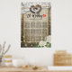 Rústico Estilo de País 12 Tablas Boda Plantillas de Poster de la tabla de asientos - Pareja Corazón de herradura antigua con nudo de abatimiento y encaje blanco, Flor de hidrangea, Luces de cuerdas y tela de arpillera sobre fondo de madera de granero antiguo. Un diseño perfecto para tu gran día. ¡Todo el estilo de texto, colores, tamaños se pueden modificar para adaptarlo a sus necesidades!