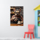 ¡Aprovecha tu espacio con encanto y cafeína! Esta hilarante barista francesa de Bulldog está decorada con un flanco rojo y blanco, con láminas que se abren detrás de una cafetería. Está enfocado, mordaz, y balanceando gafas de hipster mientras vierte espumoso arte como un profesional total. El pizarrón detrás de él enumera los especiales de bebida como "Sniffachino" y "Bark Roast". Es la combinación perfecta de lo acogedor y lo cómico para estaciones de café, rincones de desayuno, o cualquiera que deguste cafeína y cachorros adorables.