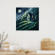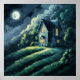 Una casa en lo alto de una colina iluminada por la luna. Vieja casa señorial encaramada sobre una colina, bajo la mirada vigilante de una luminosa luna llena y un cielo estrellado, las ventanas brillan con una luz cálida, acogedora (¿o quizá perturbadora?). Rodeada de árboles sombreados y de terreno rodante, esta obra evoca una sensación de intriga atmosférica y un encanto espeluznante. Perfecto para los que aprecian un toque de misterio en su decoración. Imaginen los cuentos dentro de esta casa solitaria en una colina azotada por el viento. La escena es a la vez espeluznante y extrañamente reconfortante. Una impresión perfecta para aquellos que se acercan a paisajes atmosféricos y un indicio de lo desconocido. Esta ilustración se puede personalizar, imprimir y descargar.