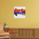 Houston, in red and blue with symbols of life in the West, cowboy boots, 10 gallon hats and cowboys. Great gift for folks who love Houston, Texas.