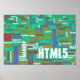 Lenguaje de desarrollo web HTML 5 como concepto en una nube de palabras con colores azul rojo y púrpura