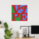 La palabra VAPE en letras rojas sobre fondo verde y rojo. Las letras VA están en la parte superior (la A está cantada de lado) y PE en la parte inferior. Homenaje al arte pop, dedicado a todos los amantes.