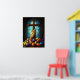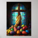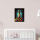 Mira este poster religioso de Pascua con una cruz en una vibrante ventana de la iglesia con huevos de Pascua como decoración de vacaciones.
