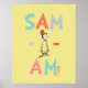 ¡No lo golpees hasta que lo intentes, tal vez te guste! HUEVOS VERDES Y HAM es una historia clásica del Dr. Seuss donde Sam-I-Am trata de hacer que su amigo pruebe huevos verdes y jamón, y ciertamente termina amándolos. Echa un vistazo a Sam-I-Am sujetando un cartel con su nombre en él.