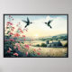 Póster Hummingbirds y Flores Silvestres con marco opciona