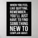 Este arte mural motivacional capta el humor y la determinación necesarios para seguir por el buen camino. "Cuando te apetezca salir, recuerda... solo tendrás que encontrar algo nuevo de lo que quejarte" es un divertido recordatorio de que la persistencia vale la pena. Perfecto para espacios de oficina, gimnasios o decoración doméstica, este diseño te mantiene centrado en avanzar incluso cuando el camino se pone difícil. Ideal para los que aprecian un enfoque alegre al trabajo duro, esta pieza es un gran regalo para quien necesite un pequeño empujoncito para quedarse en el juego.