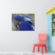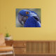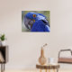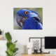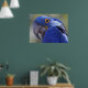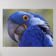 A beautiful poster of a bright blue parrot with a cheeky expression. The Hyacinth Macaw has bright blue plumage and yellow rings around his eyes and beak.