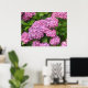 Un bonito poster o una imprenta con estas elegantes hortensias rosadas escondidas en un bonito follaje verde.