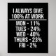 I Always Give 100% At Work Funny Work Quotes Humor Sarcastic