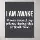 Póster I Am Awake Please Respect My Privacy Funny Sarcast