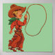 Ilustracion retro lindo de un niño vestido de vaquero girando un lazo