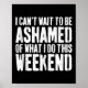 Póster I Cant Wait To Be Ashamed Of What I Do This Weeken