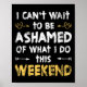 Póster I Cant Wait To Be Ashamed Of What I Do This Weeken