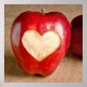 Un corazón cortado en la piel de una deliciosa manzana roja