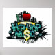Para todos los amantes de la música hip hop. Un diseño fresco y divertido con edificios de la ciudad, salpicaduras, estrellas y un signo de dólar que representa realmente el hip hop.