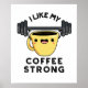 I Like My Coffee Strong Funny Drink Pun features a cute cup of coffee lifting heavy weights. Perfect pun gift for family and friends who love cute coffee puns.