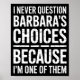 I Never Question Barbara's Choices Because I'm One Of Them