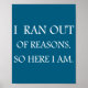 Póster I Ran Out Of Reasons Funny Excuse Quote