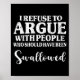 I Refuse To Argue With People Who Should Have Been Swallowed