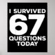Póster I Survived 67 Questions Today Funny Teacher Six Se