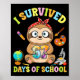 Póster I Survived Six Seven Days Of School Cute Sloth Stu