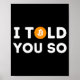 Póster I Told You So - Funny Crypto Trader Btc Bitcoin In