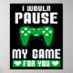 Póster I Would Pause My Game For You Gamer Player Valenti