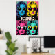 Make a bold statement with this “ICONIC” Pop Art Print, a vibrant tribute to music’s greatest legends — reimagined as original, stylized pop stars. Inspired by Andy Warhol’s classic grid portraits, this artwork features four striking duotone portraits bursting with retro flair and modern attitude.