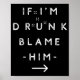 Póster If I'm Drunk Blame Him Funny Drinking Group Couple