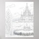 Iglesia ortodoxa en el bosque. Esbozo monocromo para su diseño