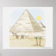 Illustration of pyramids and group of men with camels walking across the desert landscape. Copyright: Dorling Kindersley