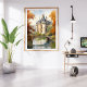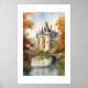 En este magnífico ilustracion acuático se puede ver la imagen de un antiguo castillo francés escondido detrás de los dorados árboles del otoño. El castillo está rodeado por una masa de agua y sólo podemos llegar a él a través de un antiguo puente estrecho. Este paisaje romántico nos recuerda nuestro pasado histórico y las vidas de las personas en tiempos antiguos.